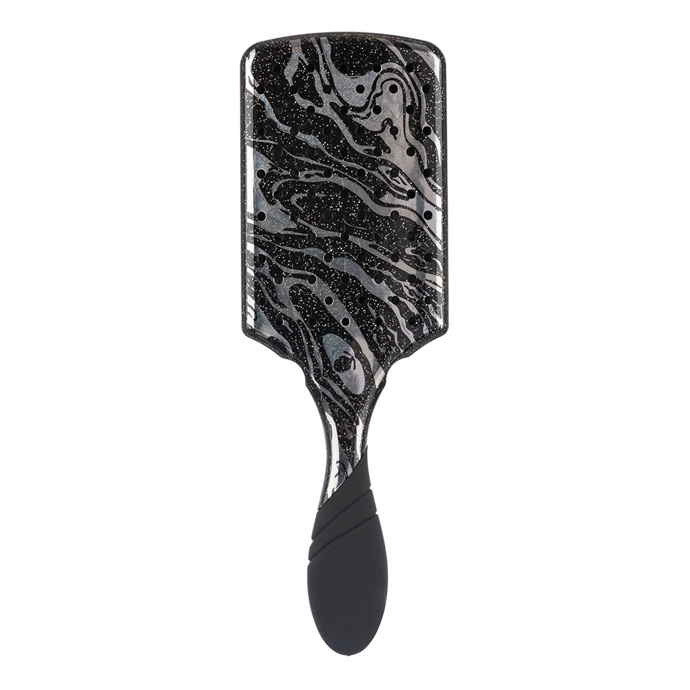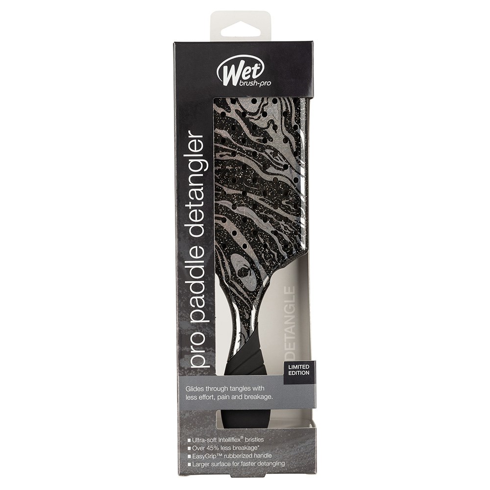 The innovative way to speed up blow-drying time. WetBrush Pro Paddle Sparkle Detangler Hair Brush Charcoal is redesigned by stylists for stylists, this brush helps hair stay strong and healthy-looking. Exclusive IntelliFlex bristles loosen knots and tangles on wet or dry hair, without pulling or snagging. Ergonomically advanced design features finger rests and rubberised EasyGrip handle for more comfort and control, even with wet hands. With vibrant, abstract pattern, this is truly an inspiring detangler.