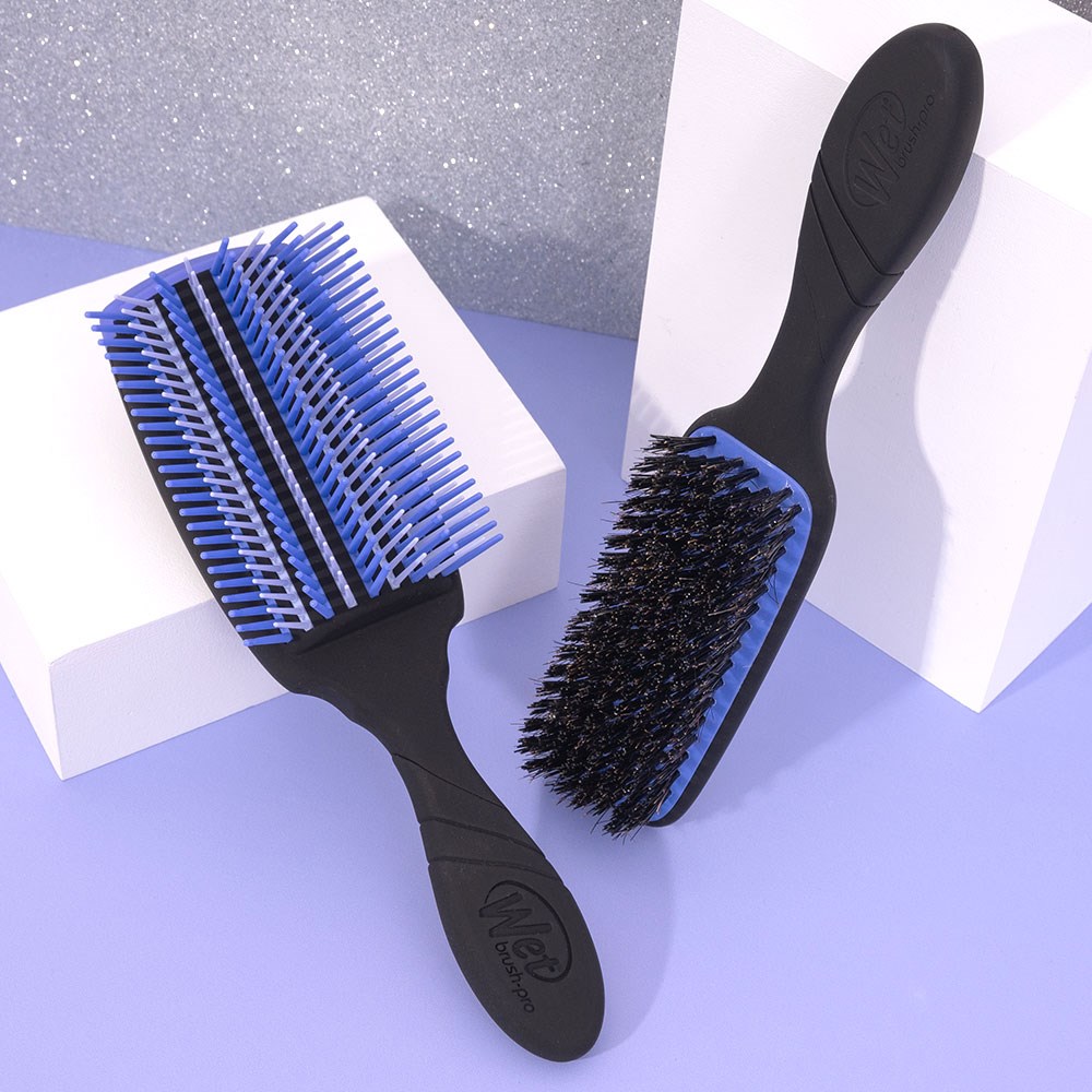 Meet the WetBrush Pro Custom Care Smoothing Detangler. Designed for all hair types, this styling hair brush provides superior tension to gently smooth hair for a super-sleek finish with no damage. Boar bristles distribute the hairs natural oils and boost all-over shine. Perfect for use on dry hair. Ergonomically advanced with rubberised Easy Grip Handle.