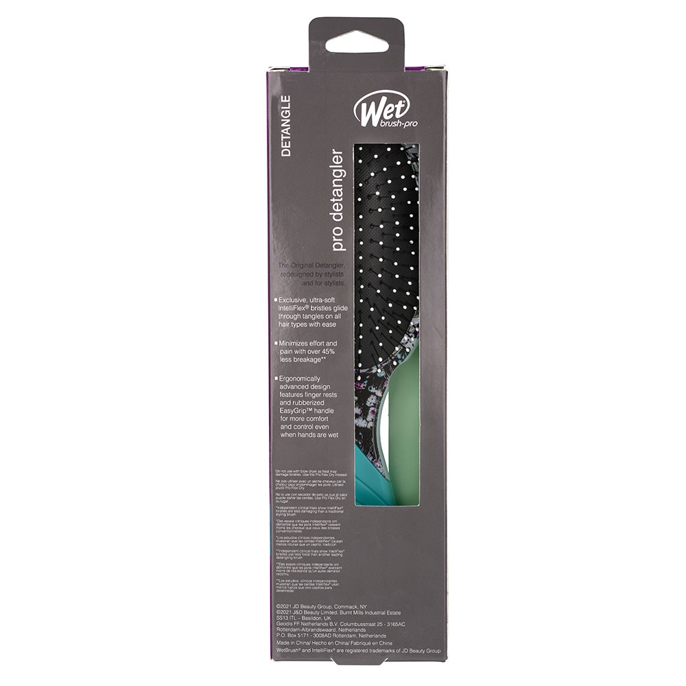 The WetBrush Pro Street Art Detangler Teal features a stunning, limited edition pattern. This is the world famous, award-winning Original Detangler redesigned by stylists for stylists. Revolutionary IntelliFlex bristles diffuse knots on all hair types, wet or dry, gliding through tangles with less effort, pain and breakage. Ergonomically advanced with finger rests and rubberised Easy Grip Handle.