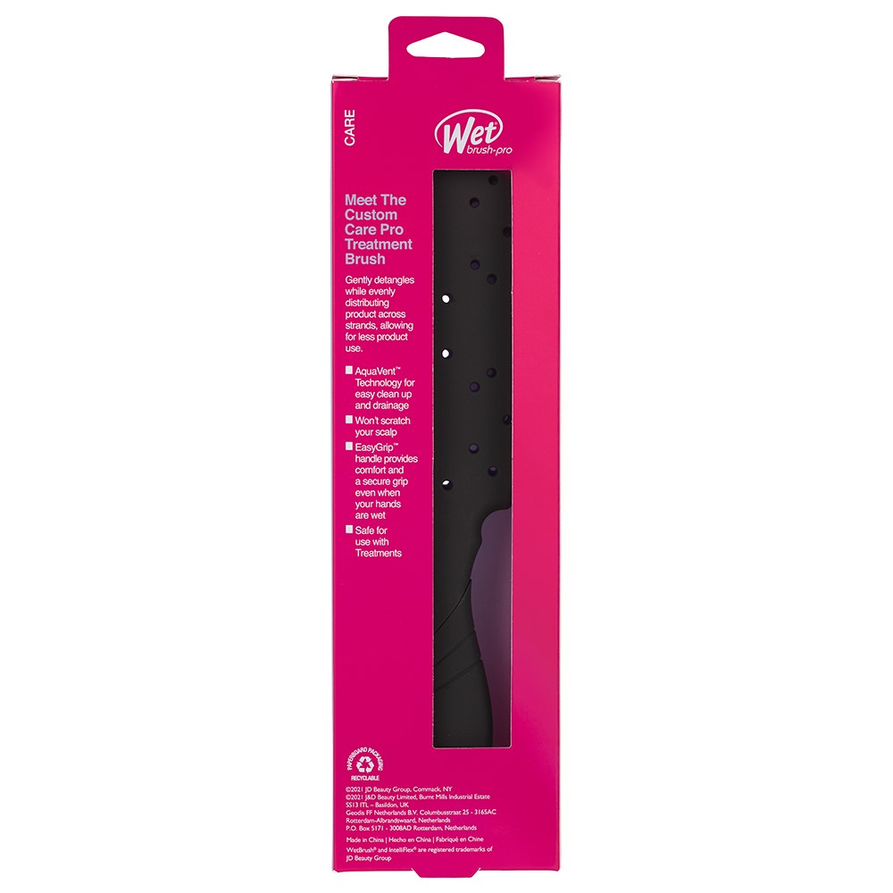 The WetBrush Pro Treatment Brush gently detangles whilst evenly distributing product across stands, allowing for less product use. AquaVent Technology for easy clean-up and drainage. Won’t scratch your scalp. Cushion brush with EasyGrip handle provides comfort and a secure grip even when your hands are wet. Safe for use with hair treatments and masks.