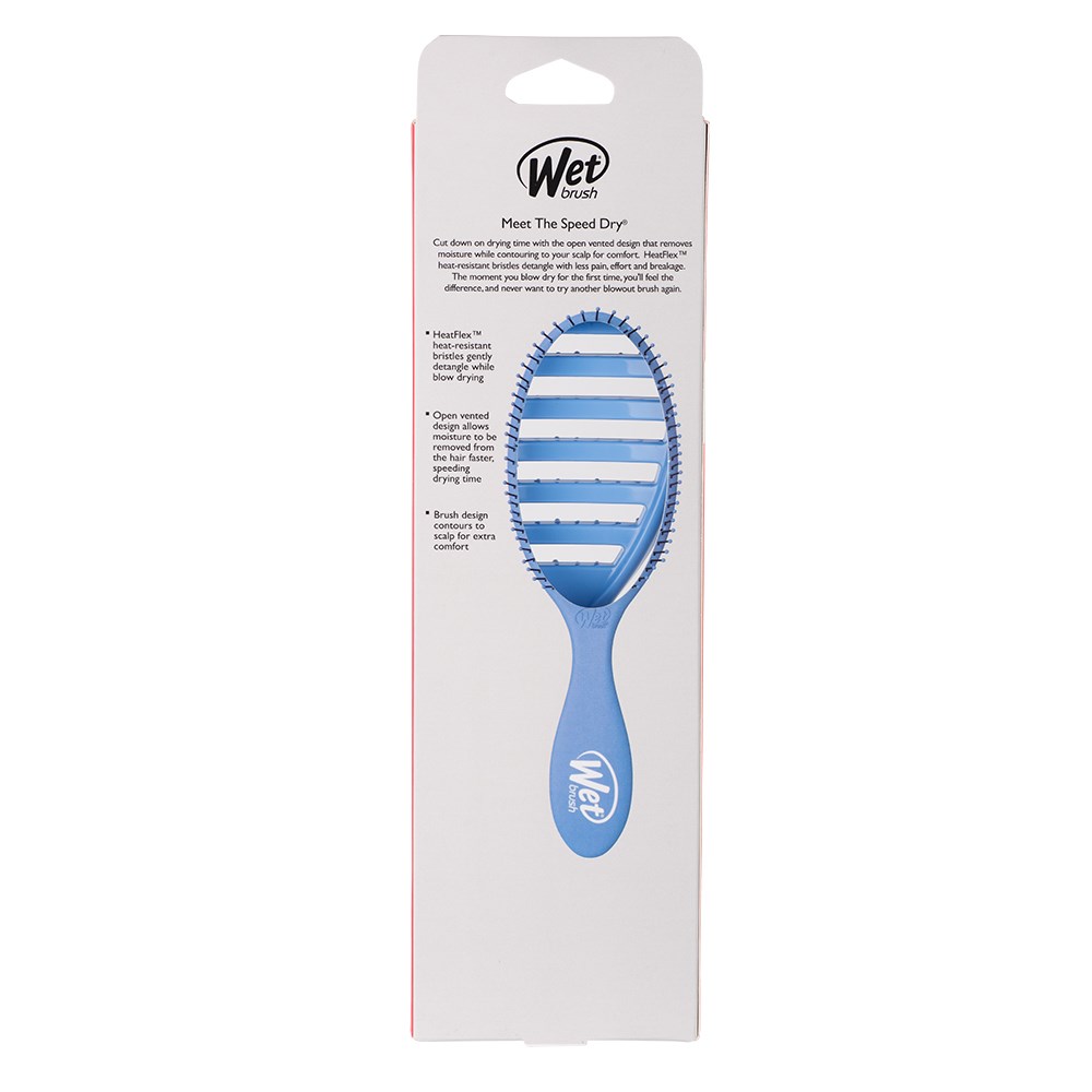 The WetBrush Speed Dry Sky hair brush speeds up drying time by allowing moisture to escape faster, and its heat-resistant bristles gently detangle whilst you blow-dry. So you can skip the extra heat and avoid damage, keeping your hair healthy and happy. Less drying time equals happier Hair!