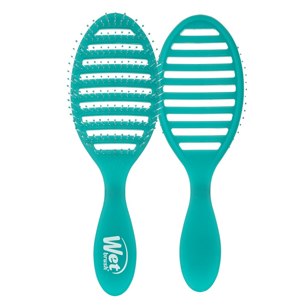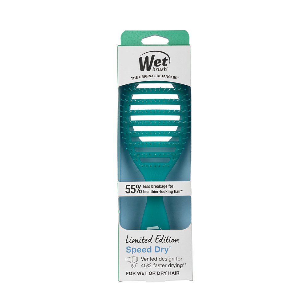 Meet the WetBrush Summer Quenchers Speed Dry in Green Juice. Dry hair without drying it out. The Speed Dry’s vented design speeds up drying time by allowing moisture to escape faster. Heat-resistant HeatFlex bristles gently detangle while blow-drying. Skip the extra heat and avoid damage, helping to keep hair happier. Brush design contours to scalp for extra comfort. Limited edition green colour.