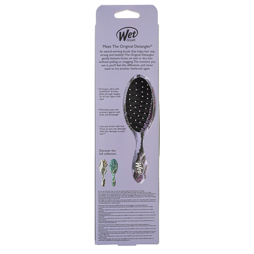 Beautiful Techno Stone designs with this award-winning WetBrush that keeps your hair tangle free. The WetBrush Techno Stone Detangler Hair Brush Purple gently loosens knots, on wet or dry hair, without pulling and snagging. The moment you use it, you’ll feel the differences, never wanting to use another brush again. Exclusive, ultrasoft IntelliFlex bristles glides through tangles on all hair types. Hence, minimising pain and protects against split ends and breakage. This Wet Brush Techno Stone Detangler lets you brush with less force, so you can detangle with less damage to your hair.