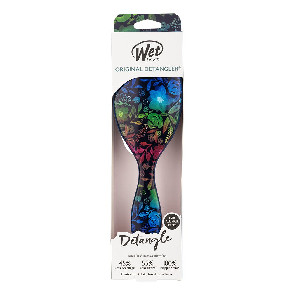Transform your hair with this colourfully whimsical detangler! WetBrush Transformative Colour Original Detangler Floral gently loosens knots on wet or dry hair without pulling or snagging. The moment you use it, you’ll feel the difference and never want to try another detangling brush again. Exclusive, ultra-soft IntelliFlex bristles glide through tangles on all hair types with ease. Minimise pain and protect against split ends and breakage. A rainbow awaits with this limited edition Wet Brush design.