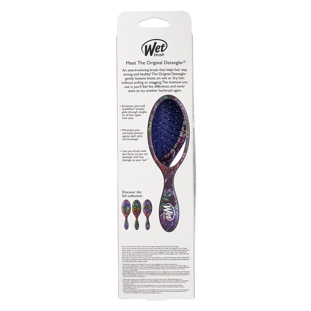 Transform your hair with this colourfully whimsical detangler! WetBrush Transformative Colour Original Detangler Peacock gently loosens knots on wet or dry hair without pulling or snagging. The moment you use it, you’ll feel the difference and never want to try another detangling brush again. Exclusive, ultra-soft IntelliFlex bristles glide through tangles on all hair types with ease. Minimise pain and protect against split ends and breakage. A rainbow awaits with this limited edition Wet Brush design.