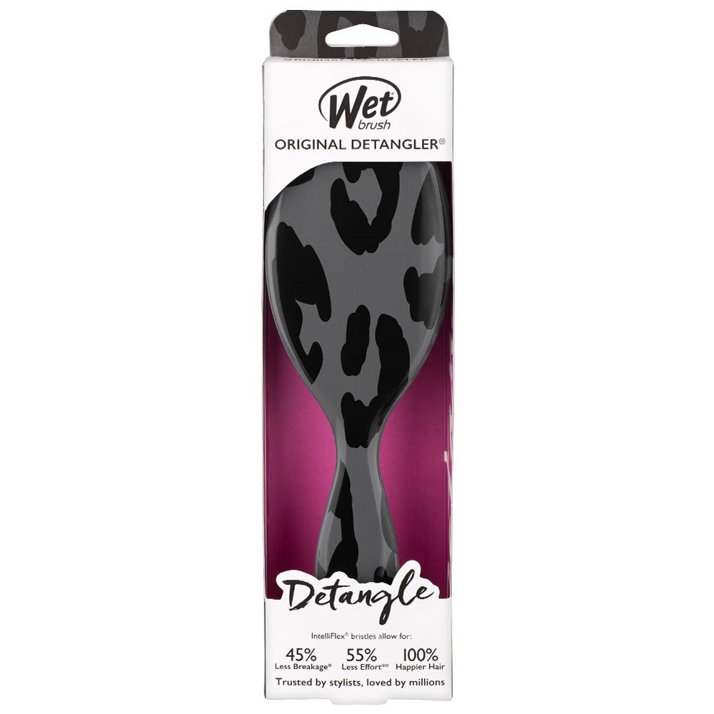 Meet the solution to roaring tangles! The WetBrush Safari Original Detangler Brush Leopard is an award-winning brush which helps hair stay strong and healthy-looking. Exclusive IntelliFlex bristles loosen knots and tangles on wet or dry hair, without pulling or snagging. The moment you use WetBrush Safari Original Detangler Brush Leopard, you’ll feel the difference and never want to try another detangling hair brush again.